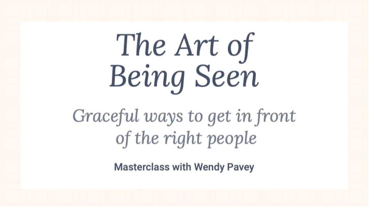 It's the Masterclass your career needs. Join Wendy Pavey for The Art of Being SeenGraceful ways to get in front of the right people.